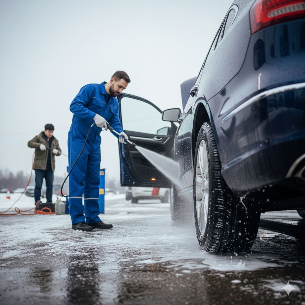 - 눈이 온 뒤 도심 주행을 했다면, 3일 이내에 고압수를 이용한 하부 세차를 반드시 진행해 녹 발생을 차단하세요.